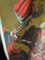 Illustrateur et figure emblématique du street art, l’artiste urbain Nychos est né en 1982 en Autriche. Il sévit sur les plus grands murs du monde depuis les années 2000, avec des fresques en taille XXL, peignant des oeuvres fantastiques où l’anatomie et la chair occupent une place de choix.